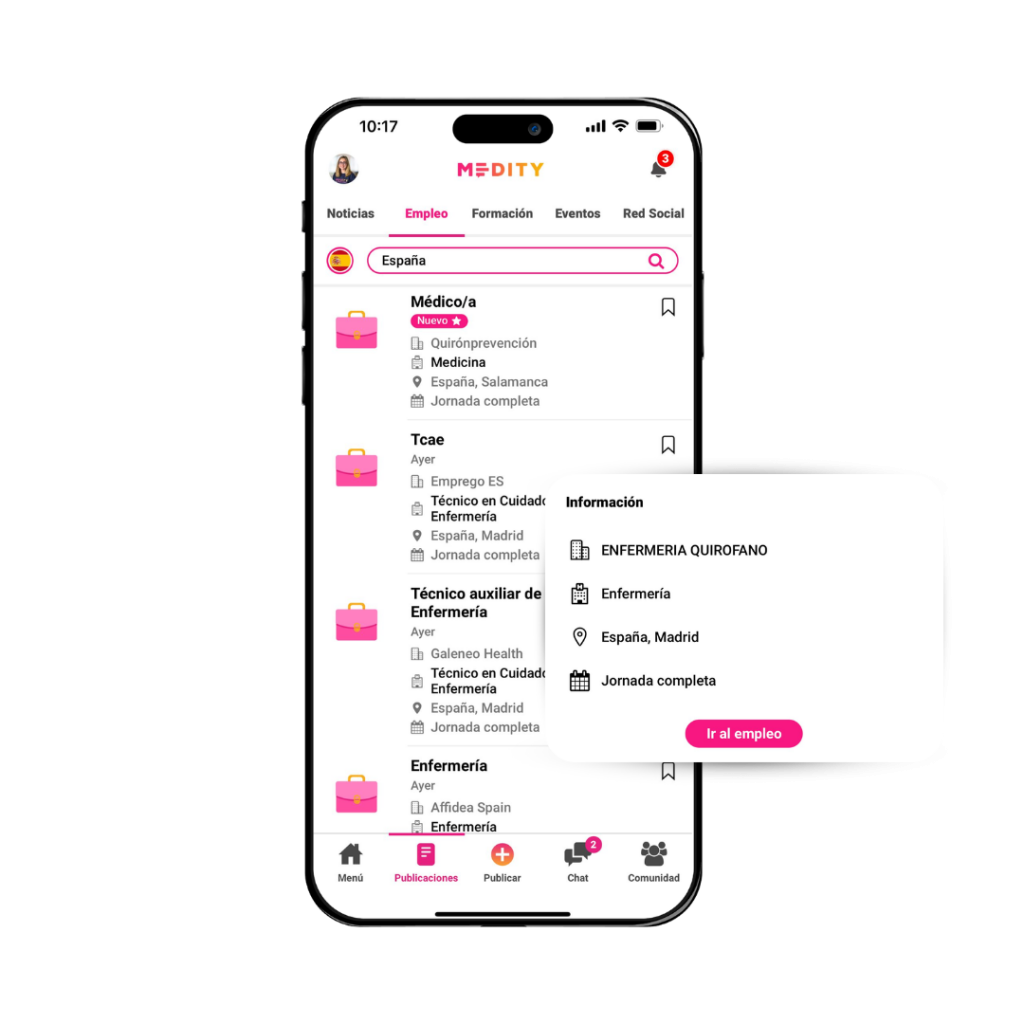 Medity App ofrece un espacio exclusivo para las ofertas de empleo del sector de la salud.